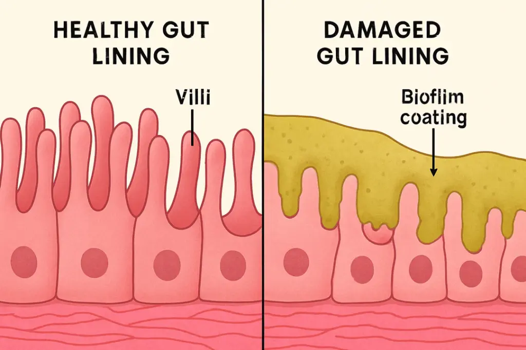 “That coating,” he explained, “is called biofilm. Think of it like plaque on your teeth, but in your gut. It’s been building for decades, and it’s the reason every diet you’ve tried has failed.”